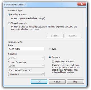 3. In the Family Types dialog create a new Type parameter named “Swappable Shelf”. Make its discipline Common, its Type of Parameter